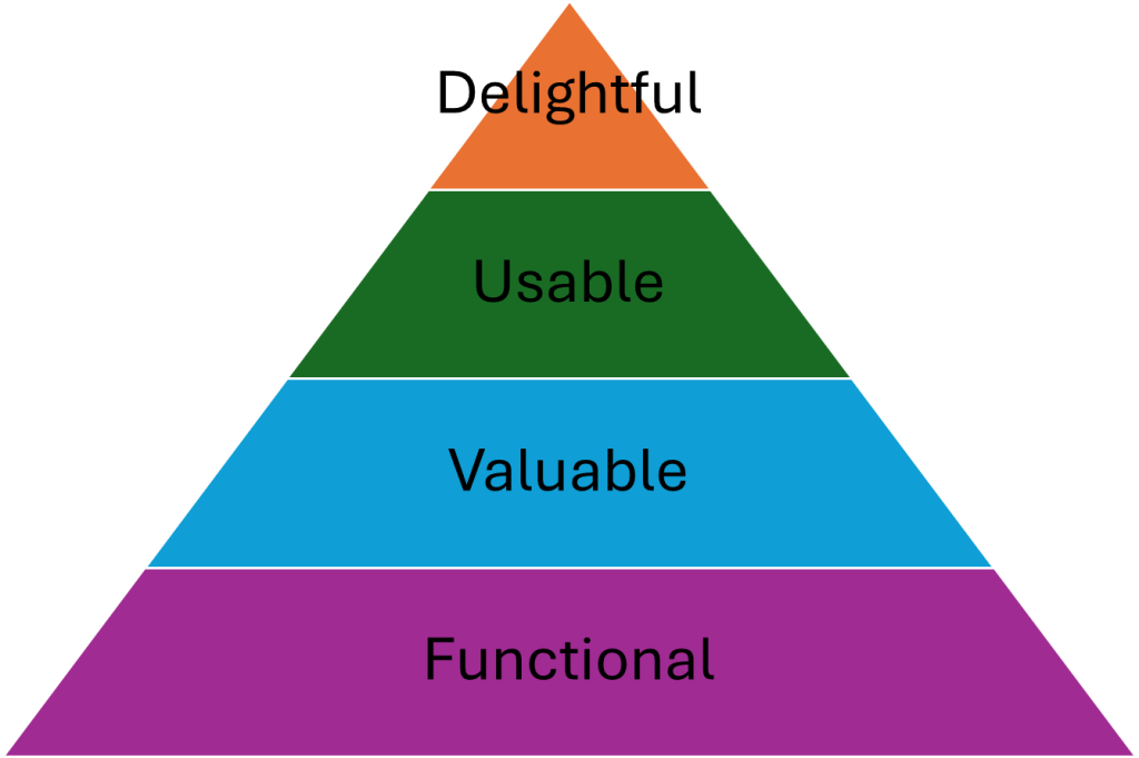 I like to think about user needs using Maslow’s hierarchy of need as an analogy: